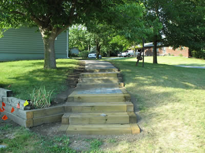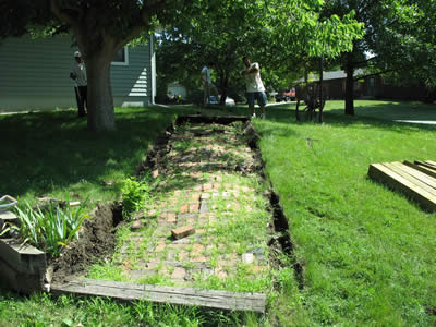 brick walkway with new stairs and a much improved walkway. The